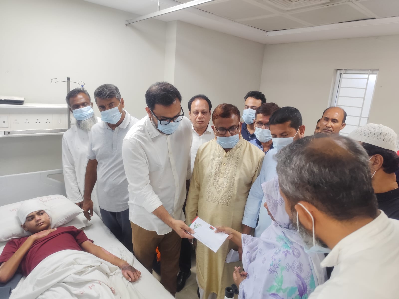 বুধবার (২২ অক্টোবর) দুপুরে রাজধানীর উত্তরা মাইলস্টোন স্কুলের শিক্ষার্থীদের নিয়ে ঘটে যাওয়া দুর্ঘটনায় আহত সাতজন বর্তমানে ঢাকা মেডিকেল কলেজ হাসপাতালের বার্ন ইউনিটে চিকিৎসাধীন। সেখানে গিয়ে আমিনুল হক তাদের শারীরিক অবস্থার খোঁজ নেন এবং বিএনপির ভারপ্রাপ্ত চেয়ারম্যান তারেক রহমানের পক্ষ থেকে আহতদের আর্থিক অনুদান প্রদান করেন।